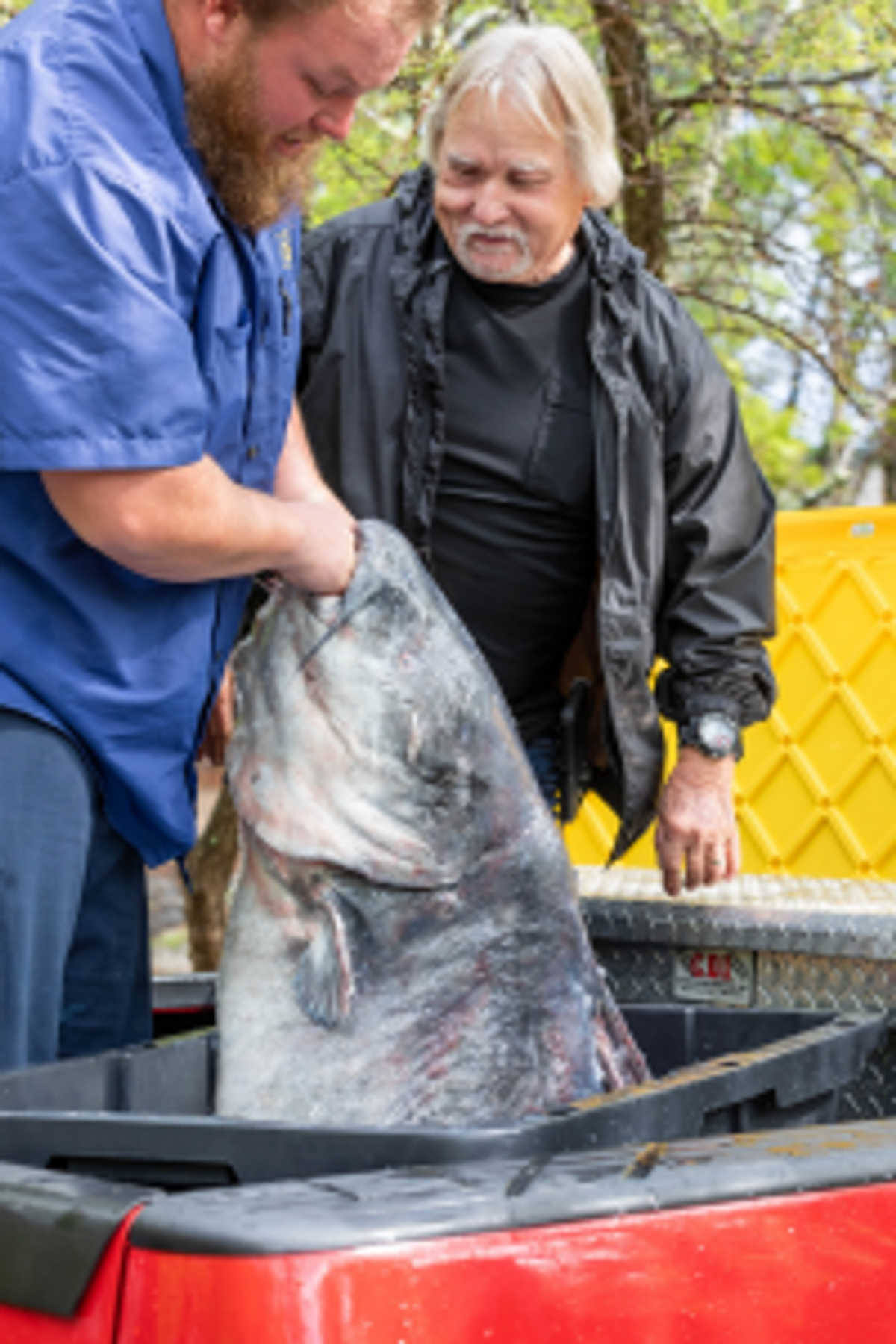 The catch was certified by the Mississippi Department of Wildlife as a new state record blue catfish on April 7, 2022, near Natchez, Mississippi.
